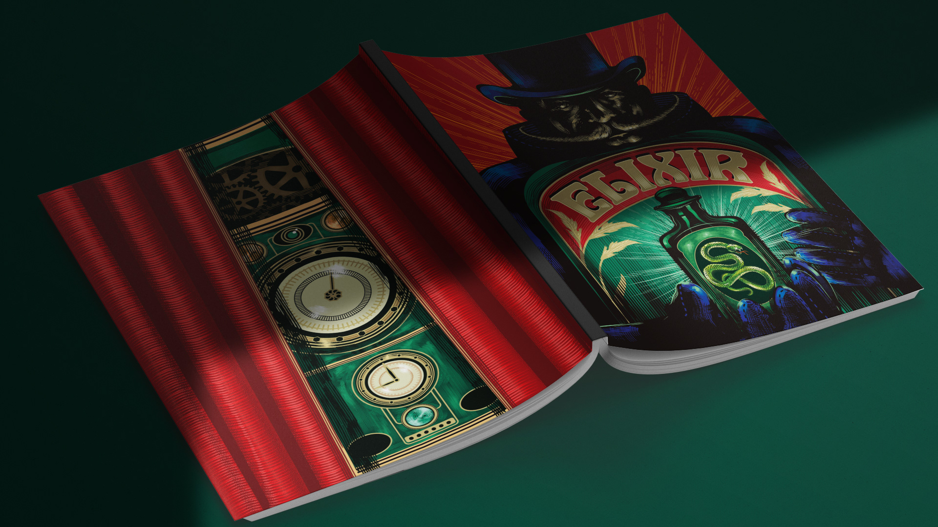 Front Cover artwork of the Sword & Scales Magazine Elixir - Winter Issue 2024 -