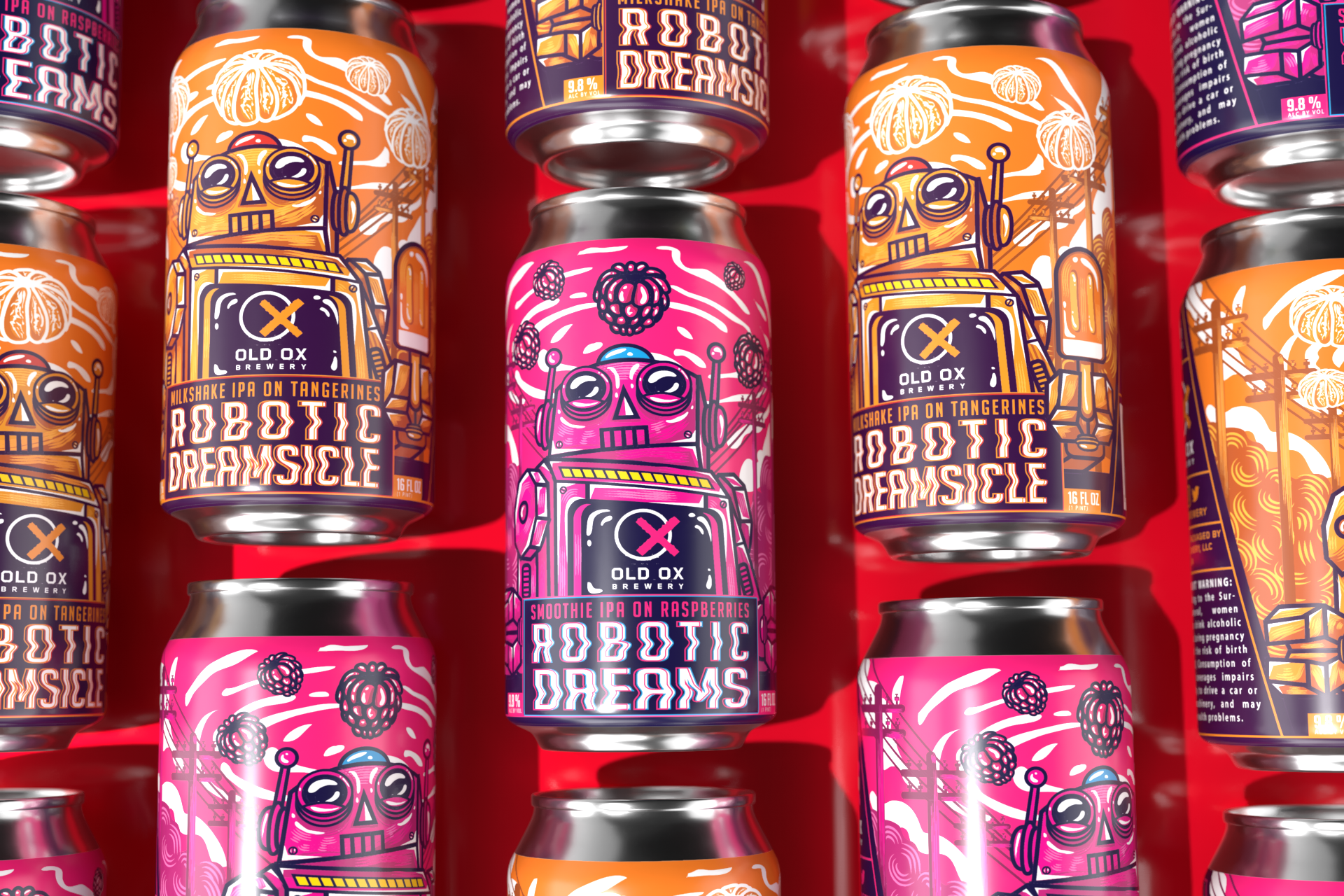 Do robots have dreams? You can find the answer in these cans! Robotic Dreams explores the fruited side of craft beer. The two creamy beer represents a milkshake style IPA with Raspberries while the other one with Tangerines, brewed by Old Ox Brewery.