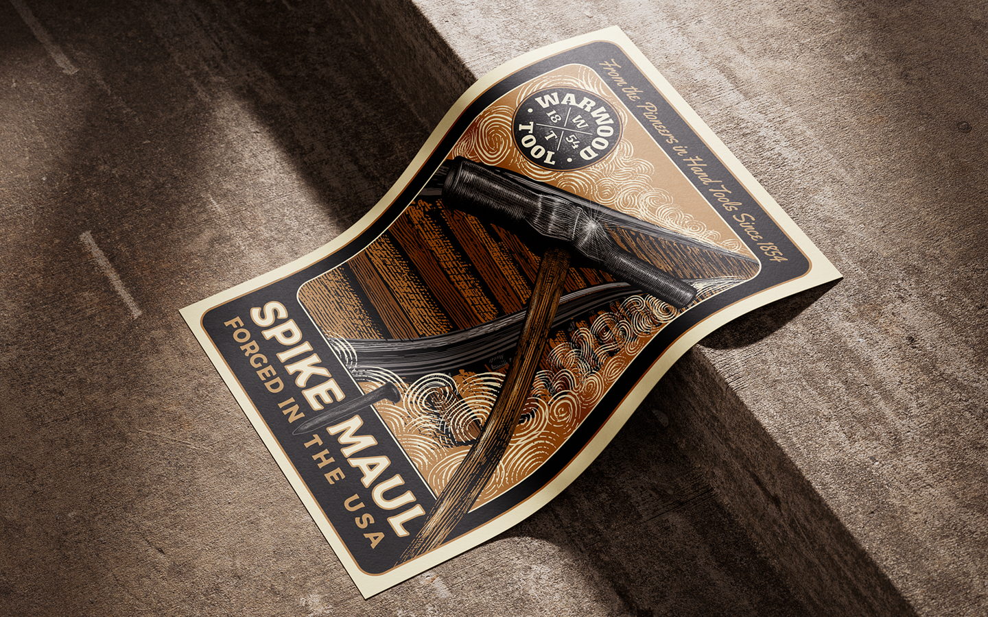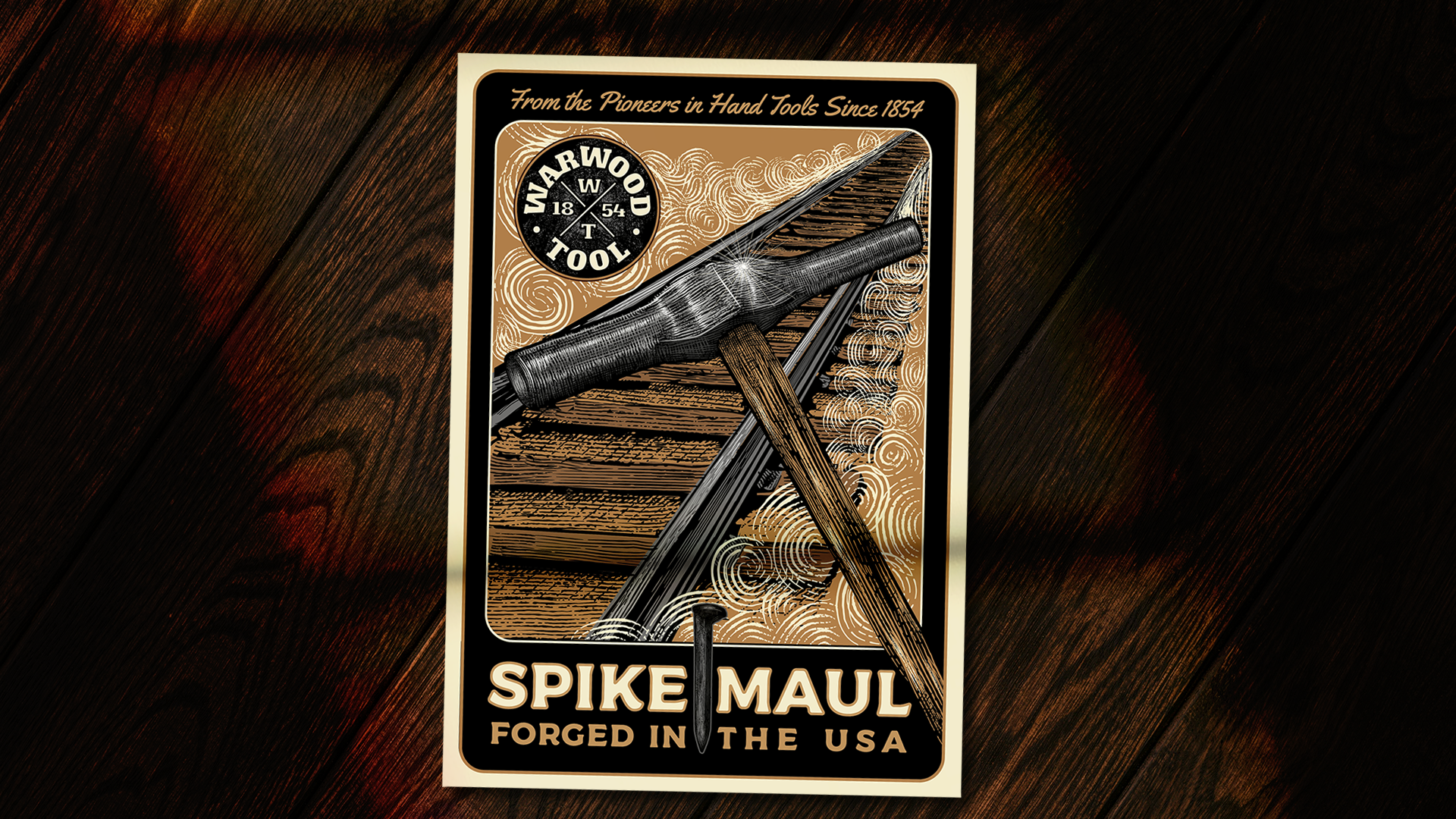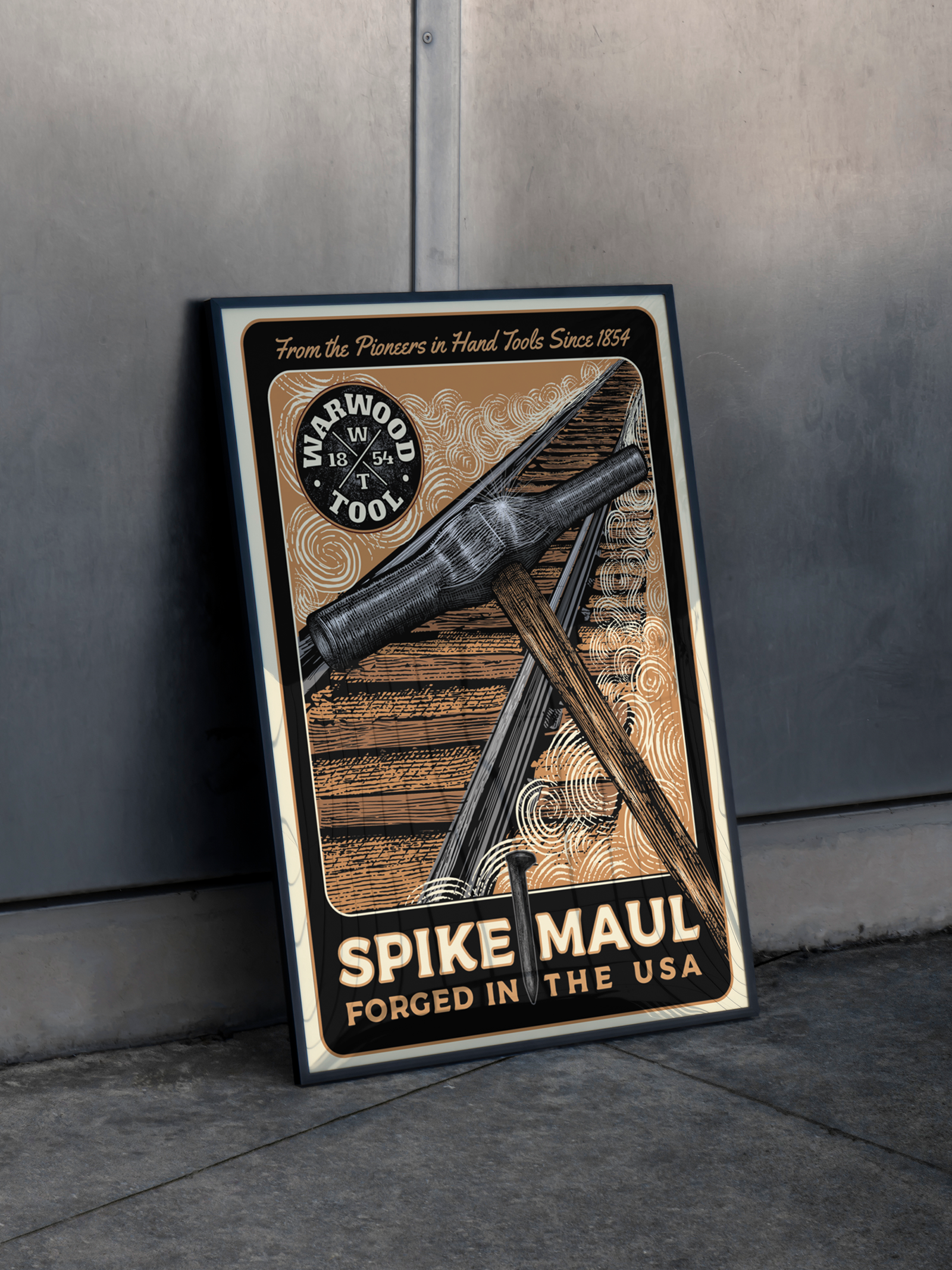Vintage poster design I've made for the legendary Warwood Tool for their Spike Maul. This historical tool was forged for hard work and helped to built the American railway tracks across the country. The tool is drop-forged by hardworking American craftsmen from premium American steel at the same West Virginia shop where they’ve made their tools since 1905.